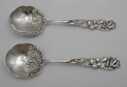 Pretty 4" continental .800 grade silver jam spoons, 101mm, 24g. |