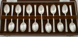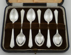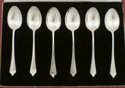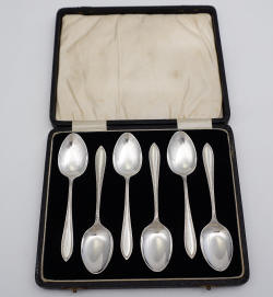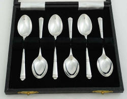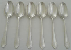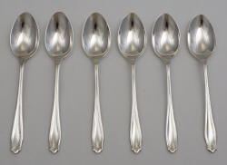 Six vintage Art Deco style teaspoons, Emile Viner, Sheffield 1964, 117mm, 95g. |