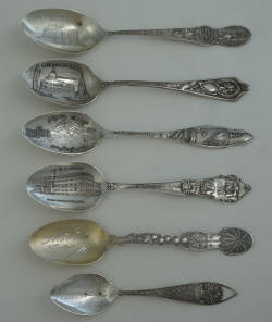 Six silver souvenir spoons, five USA and one Canada, total 96g. |