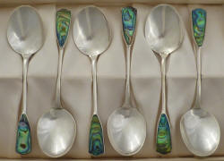 Six 3 ¾" abalone inset, Dunedin, New Zealand, mid-20th century, 68g. |