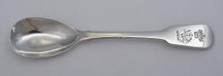 Onslow mustard ladle and salt spoon, Hilliard & Thomason, Birmingham 1881, 76mm, 11g. |