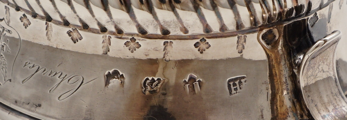 SILVERSMITH | Henry Brind. Henry was apprenticed to Richard Bayley on 5th March 1734 on the rather significant payment of £31 and 10shillings. Grimwade notes that Richard 'produced good plain hollow-ware such as tankards, jugs, tea and coffee-pots'. This cup fits that description being of good quality and with just enough decoration to be fashionable at the time but without any fanciful excesses. A very English piece. |