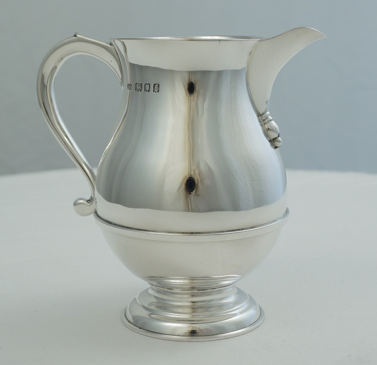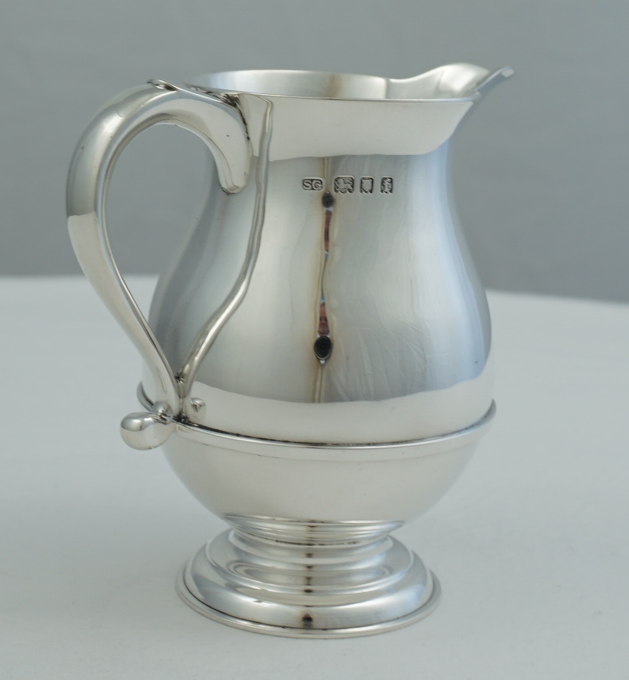 | DESCRIPTION | High quality antique English solid sterling silver reproduction of an early Georgian style milk or cream jug. |