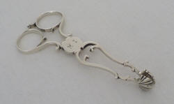 5" cast silver rococo sugar nips, Philip Roker, London 1740s, 130mm, 38g. |