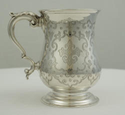 5 ¼" Victorian Gothic Silver One Pint Tankard, London 1867, 132mm, 252g. |