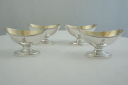 Spectacular Set of Four 4" Georgian Silver Gilt Oval Pedestal Salts, London 1799, 104mm, 328g. |
